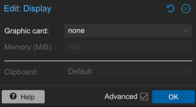 • Graphics card: „VirtIO-GPU“ → Je nach Linuxversion hat der Gast Probleme Bootmeldungen anzuzeigen. Dabei werden nur unleserliche Dinge auf der noVNC Konsole angezeigt. Der wechsel zu „VirtIO-GPU“ löst dies. Da wir in späterer Folge dieses Artikel ohnehin die serielle Konsole als Default verwenden möchten, ist dies optional.